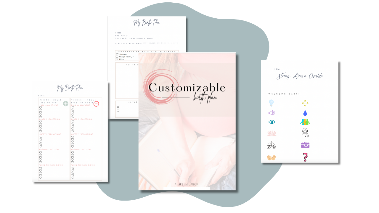 ✔️ The Empowered Birth Workbook – A printable, interactive workbook with exercises, birth plan templates, and journaling prompts to help you customize your birth experience.
